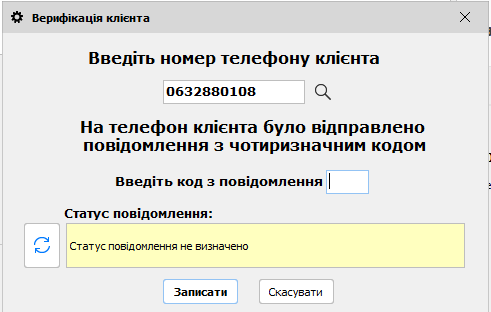 Клієнту на телефон прийде смс з 4ма цифрами, після вводу їх в це вікно картка додастся до реалізації
