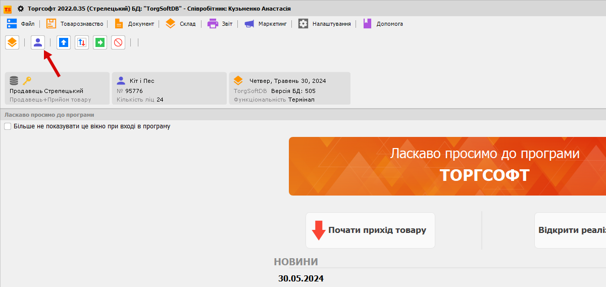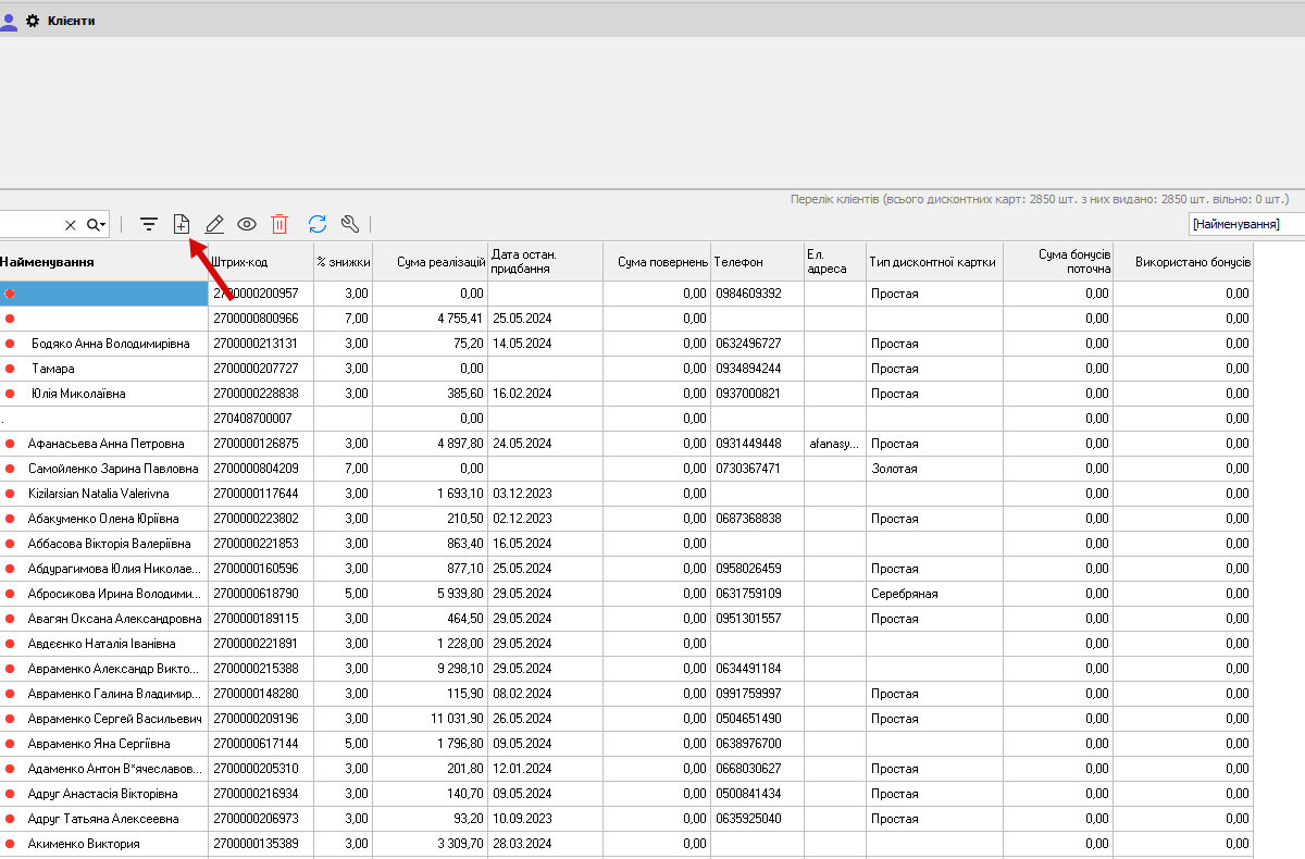 Для цього натискаємо на цю іконку (у випадку якщо бонусна картка була активована в реалізації