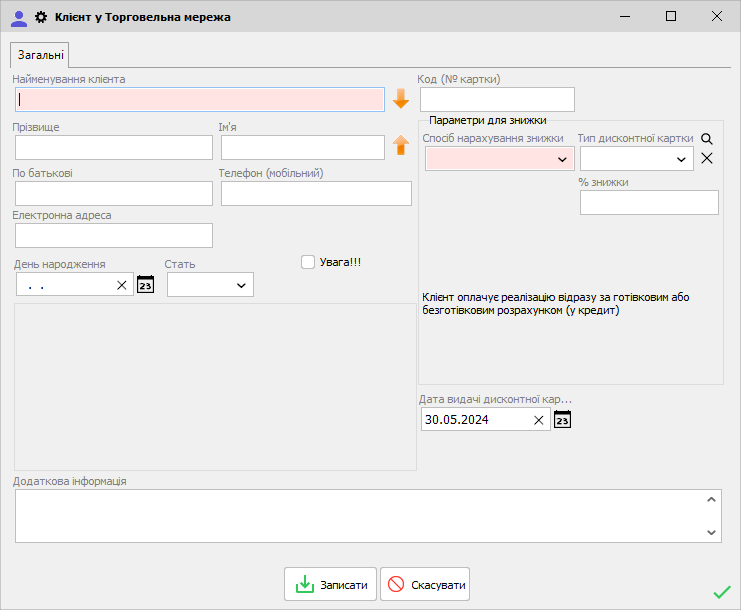Вносимо всі дані про клієнта