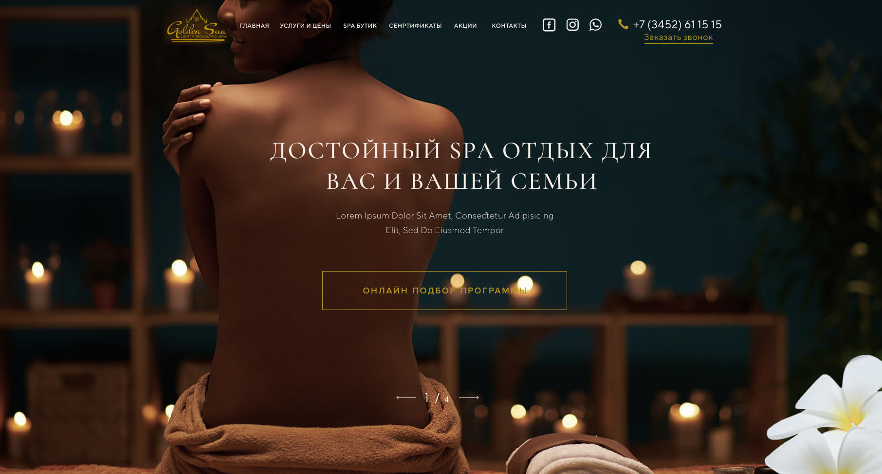: develop a landing page for the Thai massage center "Golden Sun"