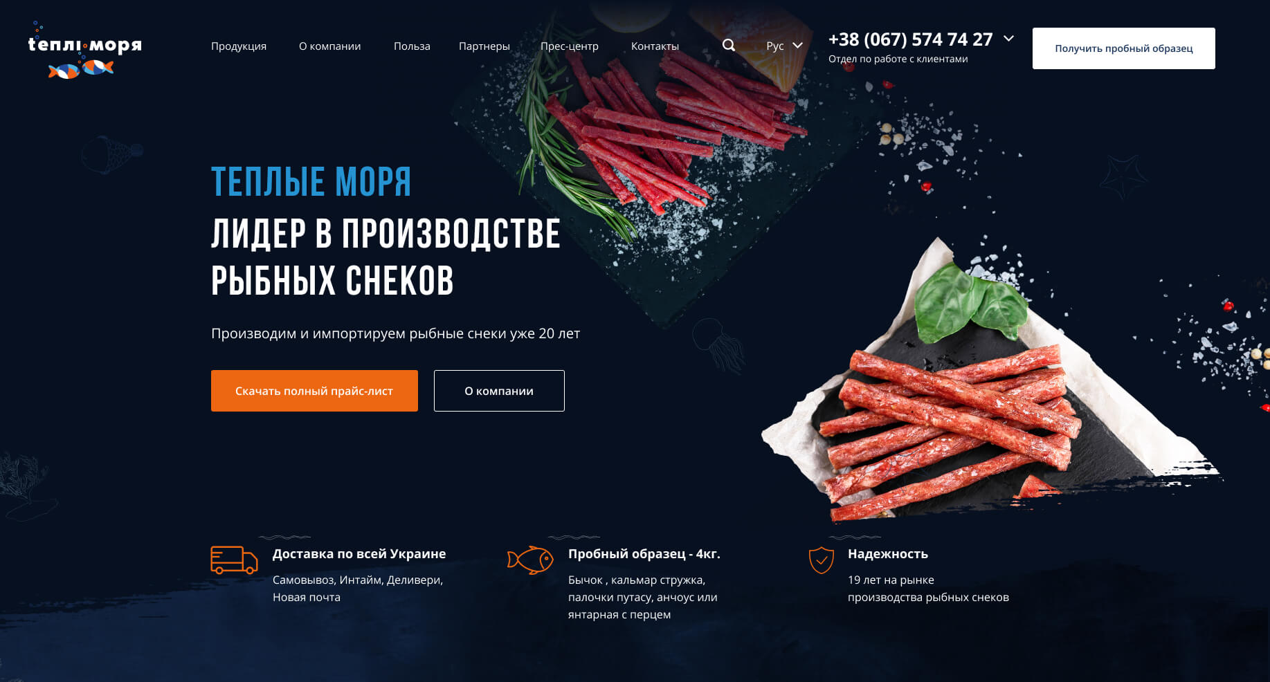 : develop a website for a fish snack company