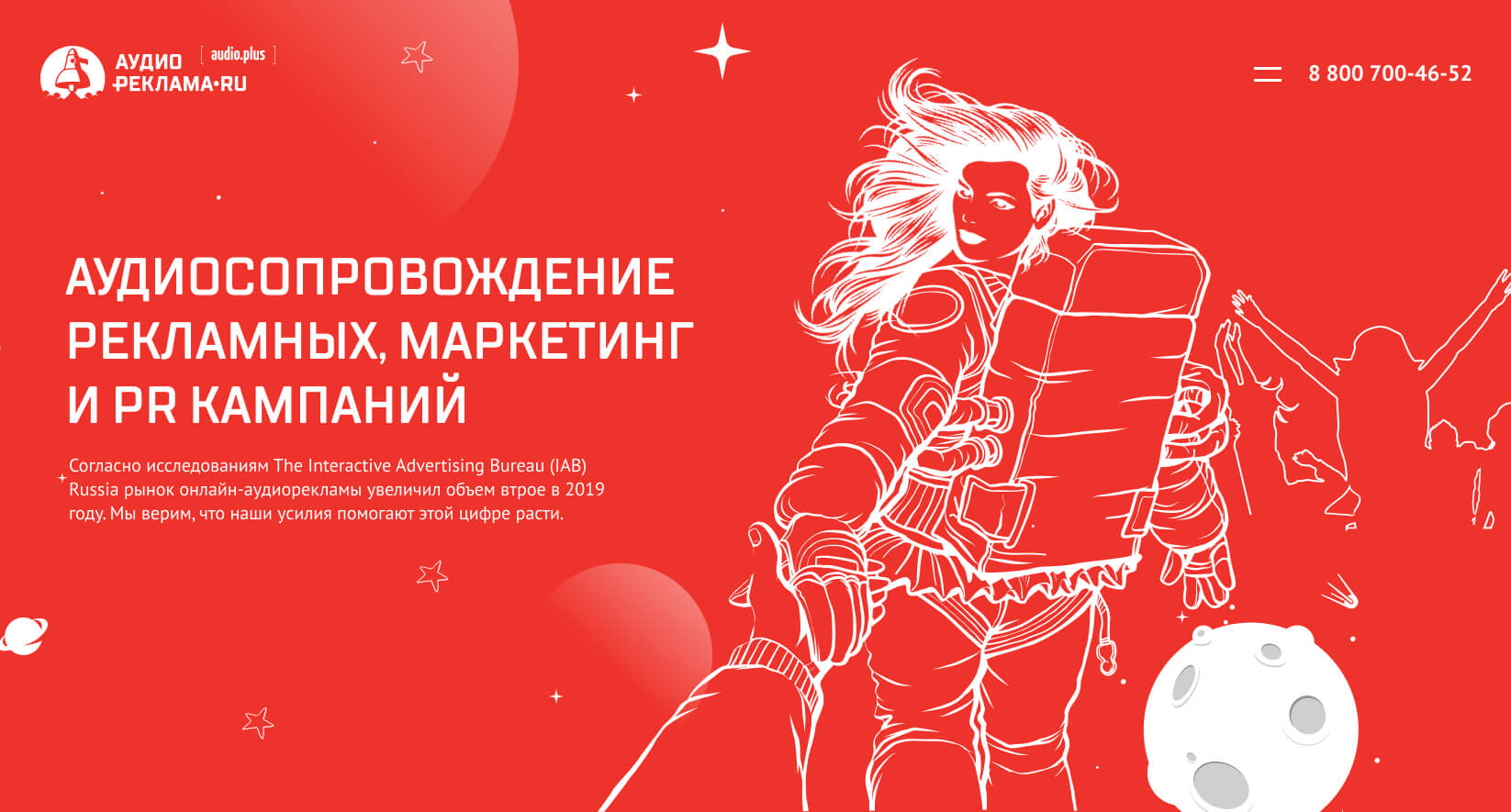 : develop a website for a company for audio advertising in space style