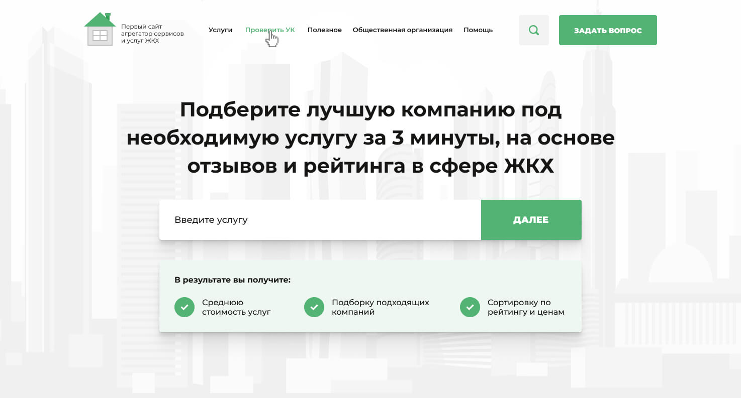 Site for the aggregator of housing and communal services