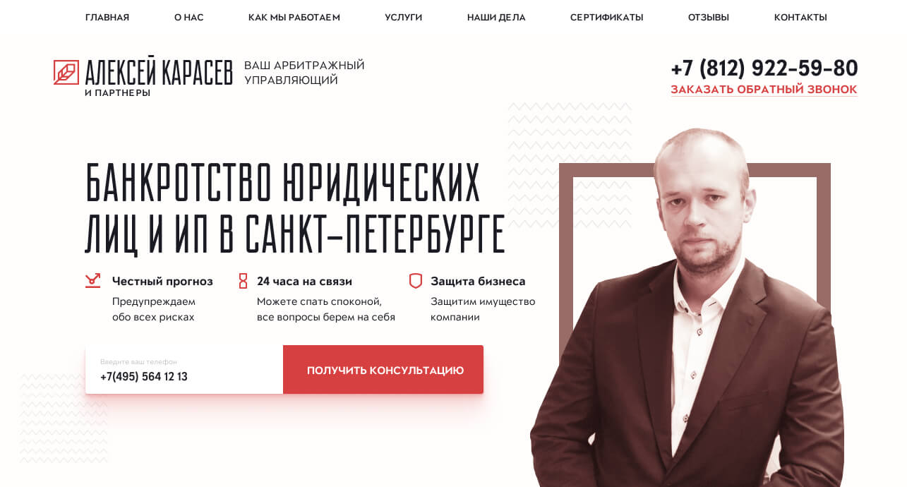 : develop a personal website for the arbitration manager Alexei Karasev
