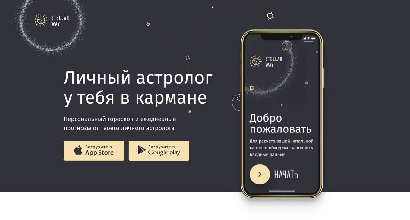 Website for the application "Stellar Way"
