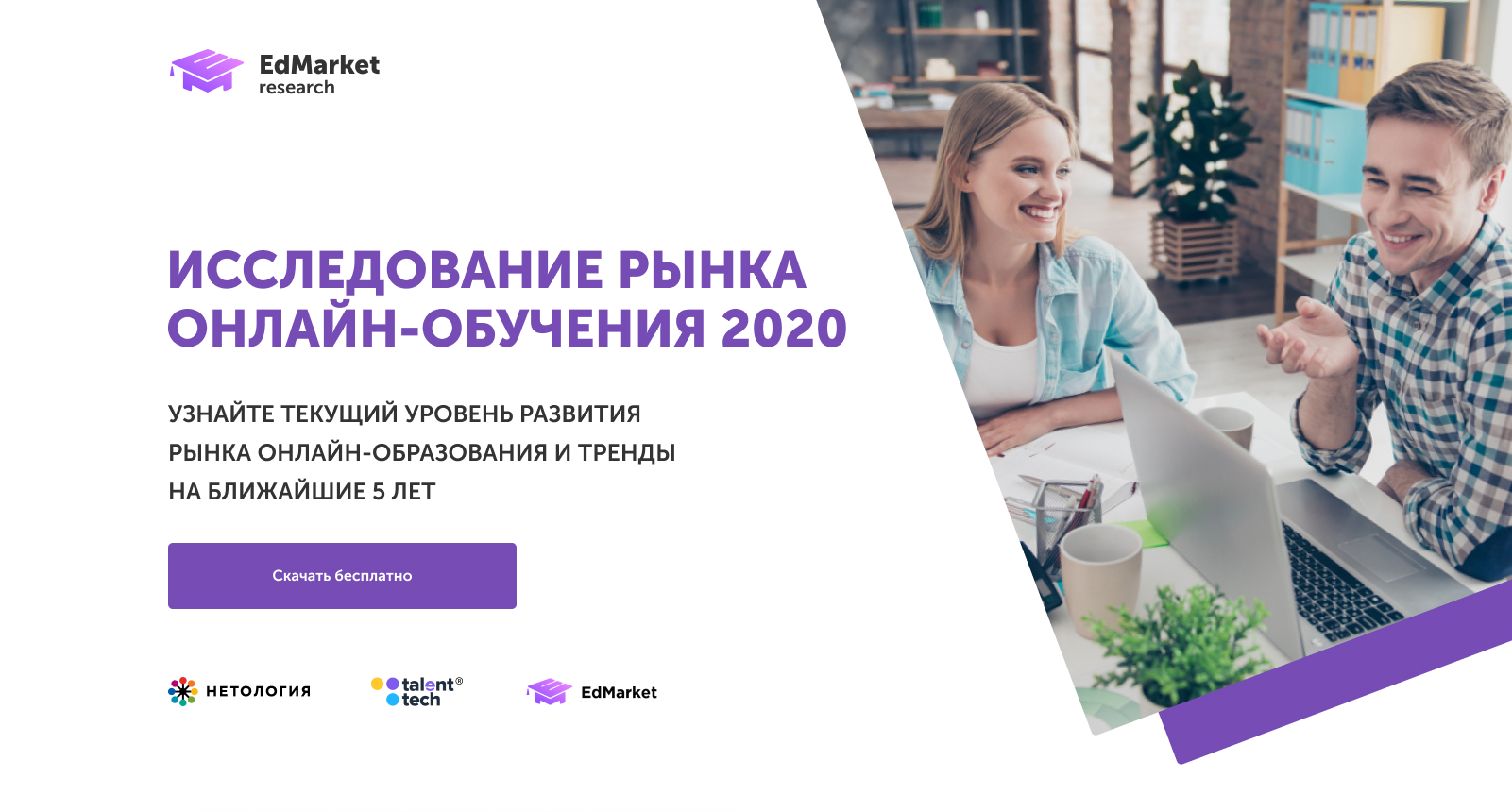 Landing for the company "EdMarket"