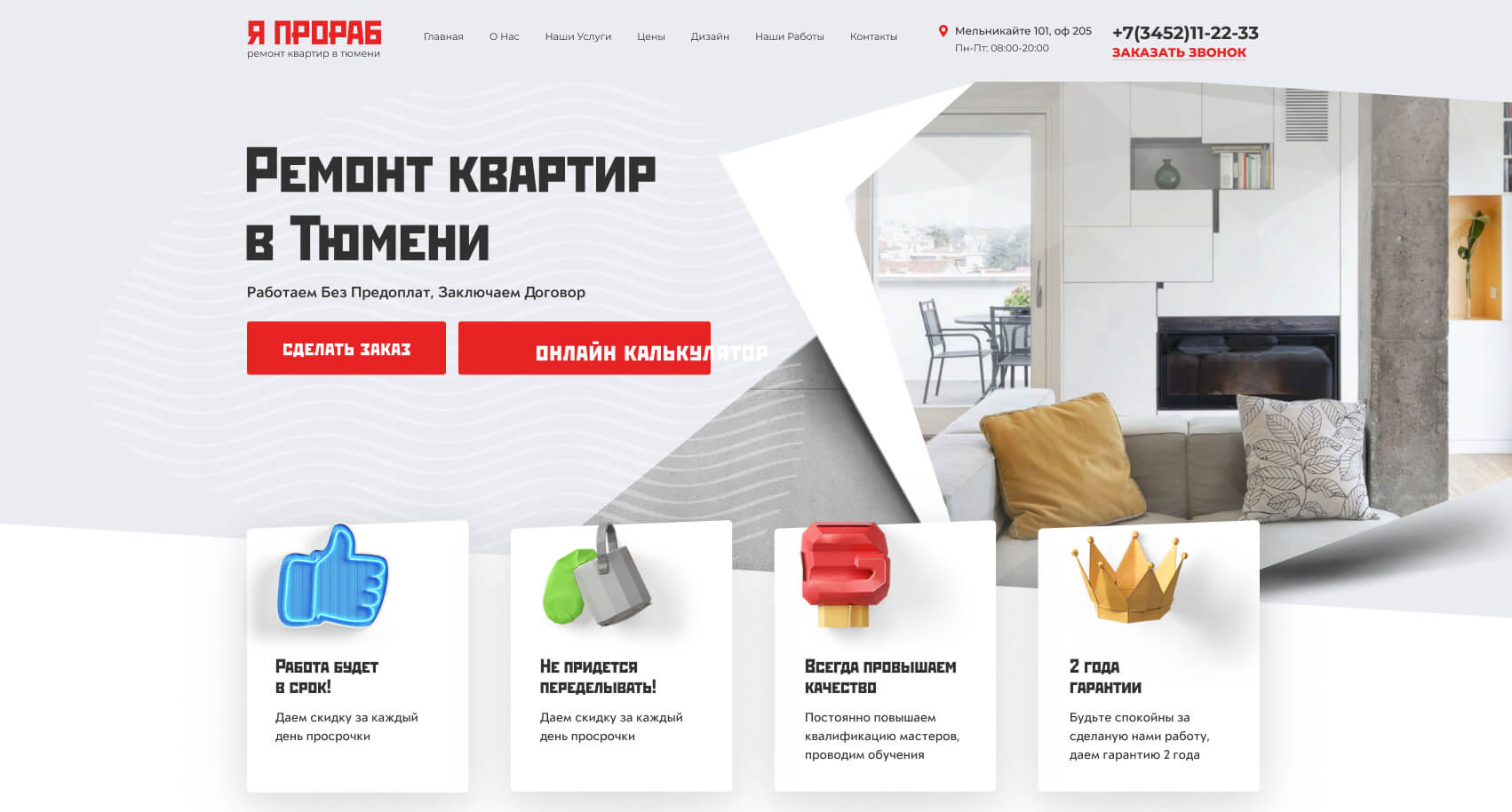 : develop a landing page for apartment renovation in Tyumen "I am a foreman"