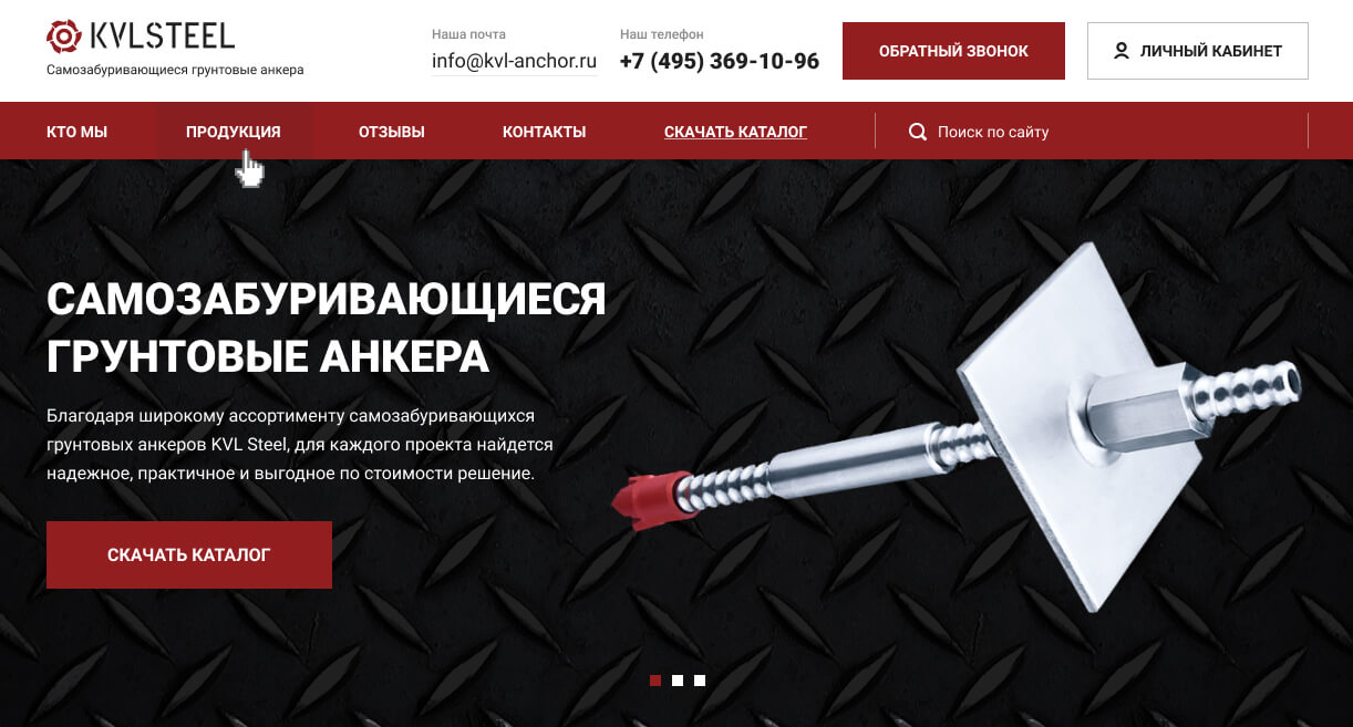 Website for the company "KVLSTEEL"