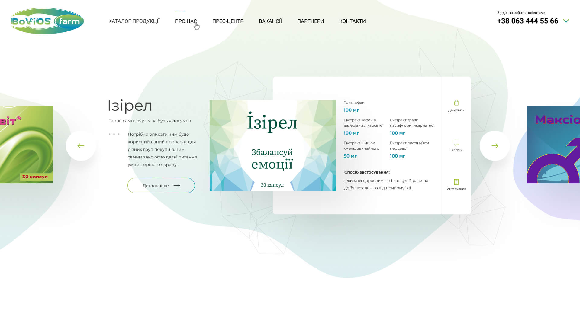 develop 10 pages for the site of the pharmaceutical company "Bovios Farm"