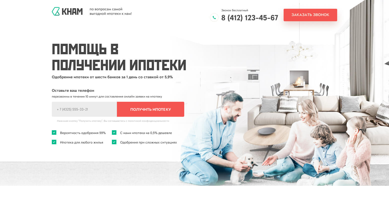 : develop a website for the KNAM company, which helps in obtaining a mortgage