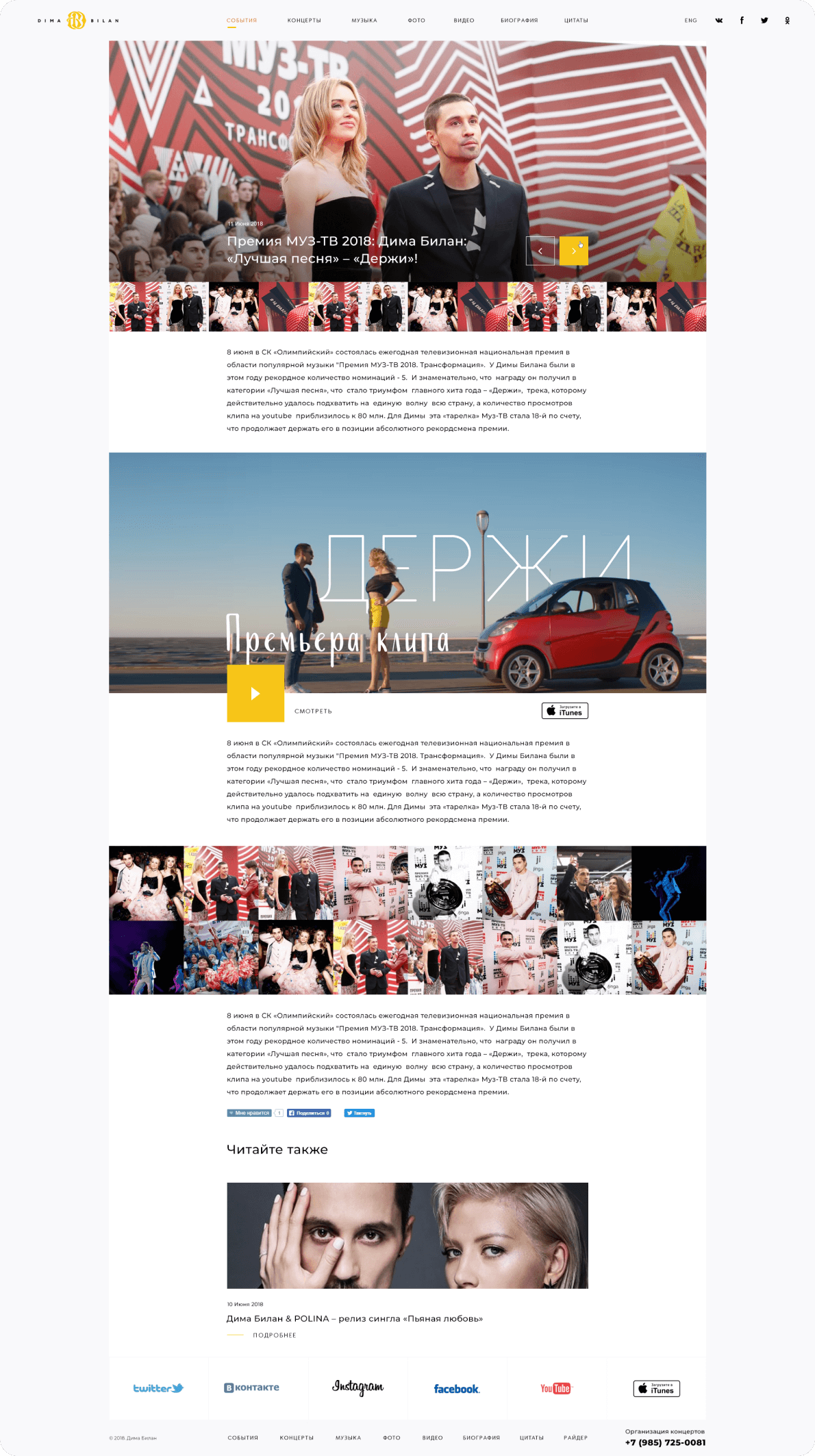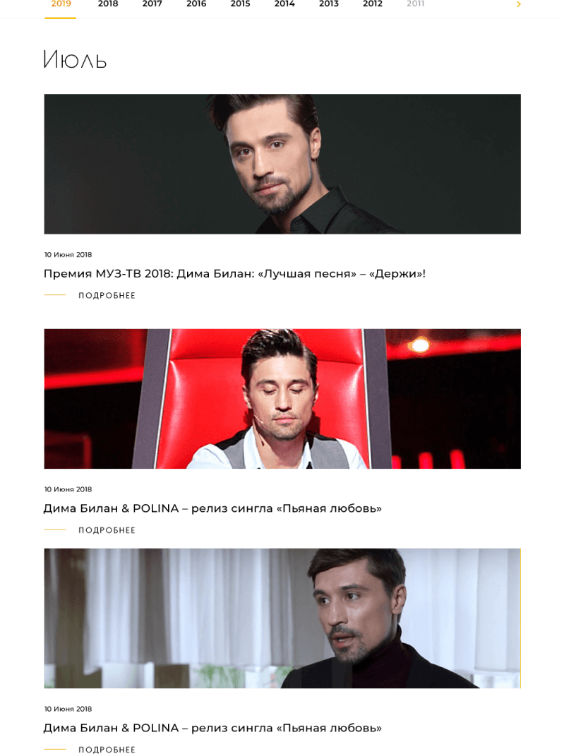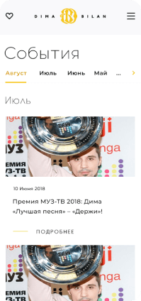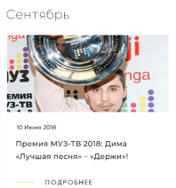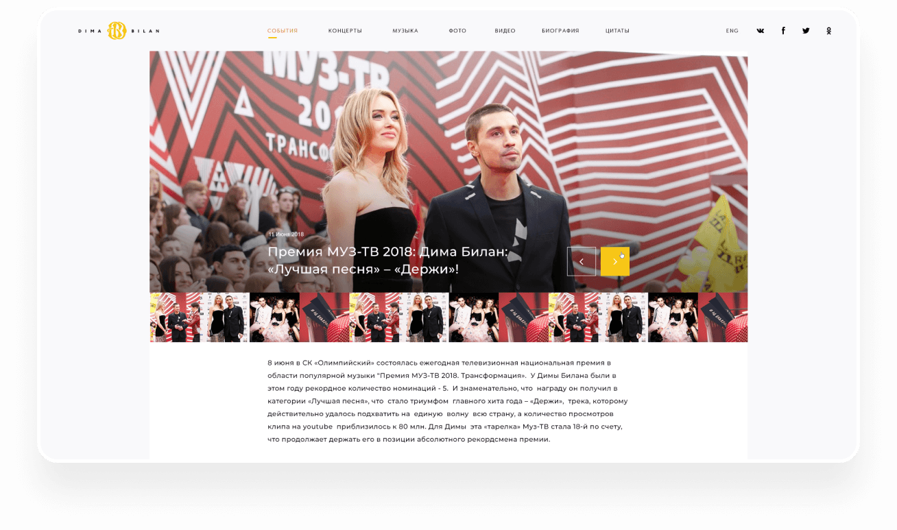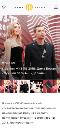 As a screen saver, we have implemented an interactive process of interaction with the user, showing Dima's photos showing the types of creative activity.